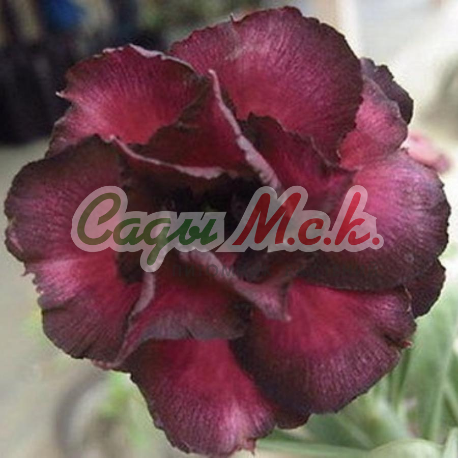 Adenium Black Fire - отличается ранним цветением и неприхотливостью в уходе. Диаметр цветка - 5-7 см. Окрас темно-красный, ближе к краям резко набирает насыщенно-темного, почти черного оттенка. Края лепестков красивые волнистые, лепестки широкие, перекрывающие друг друга. Цветение обильное.