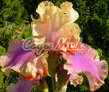 Ирис Burgermeister - мощный и впечатляющий сорт ириса. Желтоватый с лавандовым налетом верх, орхидейно-пурпурный низ. Высота 70-80 см.
