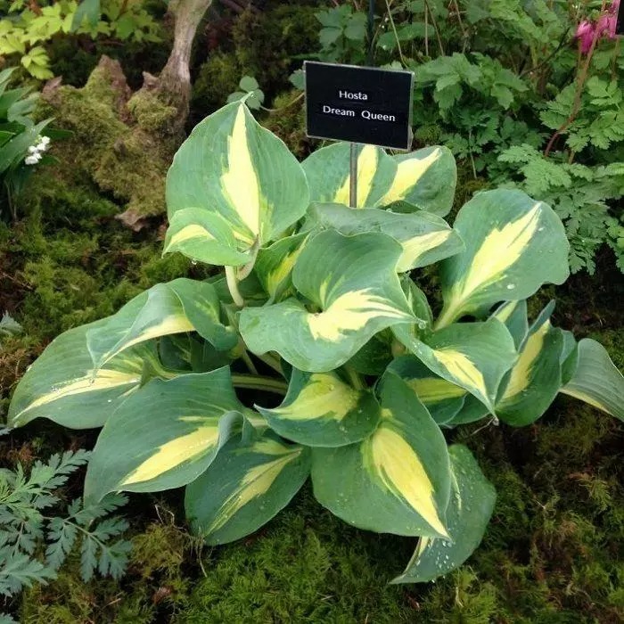 Хоста гибридная Дрим Квин имеет слабо выраженные соцветия в виде колокольчиков, которые активно цветут в летний период. Оно имеет большие листья темно-зеленого цвета с вертикальными светло-зелеными полосками. Садоводов оно привлекает своим внешним видом, который хорошо разнообразит композицию сада, добавит ему восточной изысканности и шика. Рядом с ним можно высаживать тенелюбивые растения, которые скроются под его листьями. К типу почвы Хоста гибридная Дрим Квин не прихотлива, но она обязательно должна быть влажной и обработанной удобрениями. Недопустима высадка под прямыми солнечными лучами.