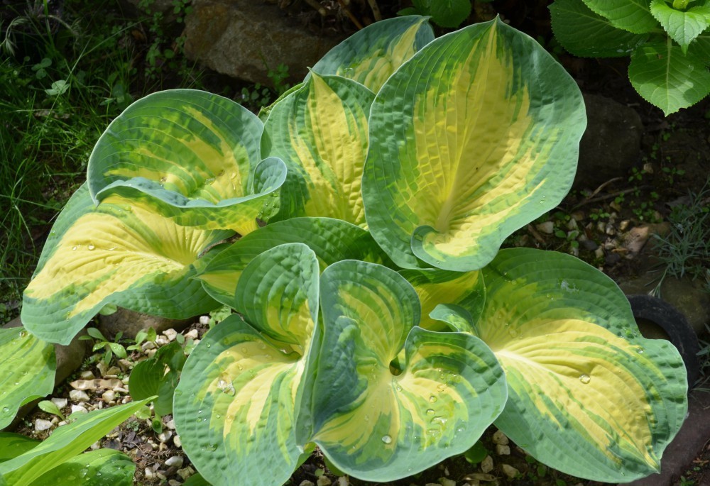 Саженцы хосты Sunsеt Grооvеs представляют категорию средних сортов. Взрослый куст выглядит следующим образом: листья: толстые и морщинистые; по центру – желтые, по краям – зеленые; цветки: белые; размер: высота – до 40 см, ширина – до 50 см.Хоста Sunsеt Grооvеs, в отличии от других сортов, хорошо растет на солнце. Также она обладает уникальным для многолетников качеством – лист названного сорта не поедается улитками и слизнями. Что касается цветоносов, то многие садоводы удаляют их с целью сохранения гармонии цветочных композиций.