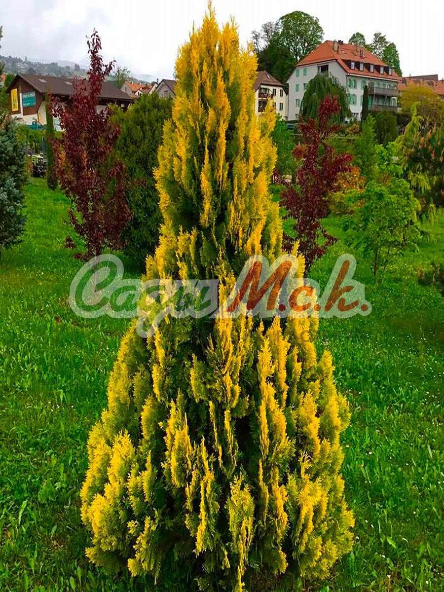 Туя западная Holmstrup Yellow - небольшое дерево, отличающееся плотной широкой колонновидной формой, достигающее 4 м высоты и 15 см годового прироста. Желтая хвоя удерживается весь год,хорошо растет на солнечных местах. Сорт хорошо годится для низких изгородей и композиций в контейнерах.