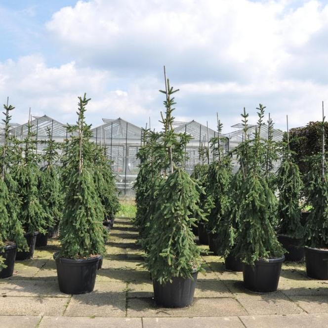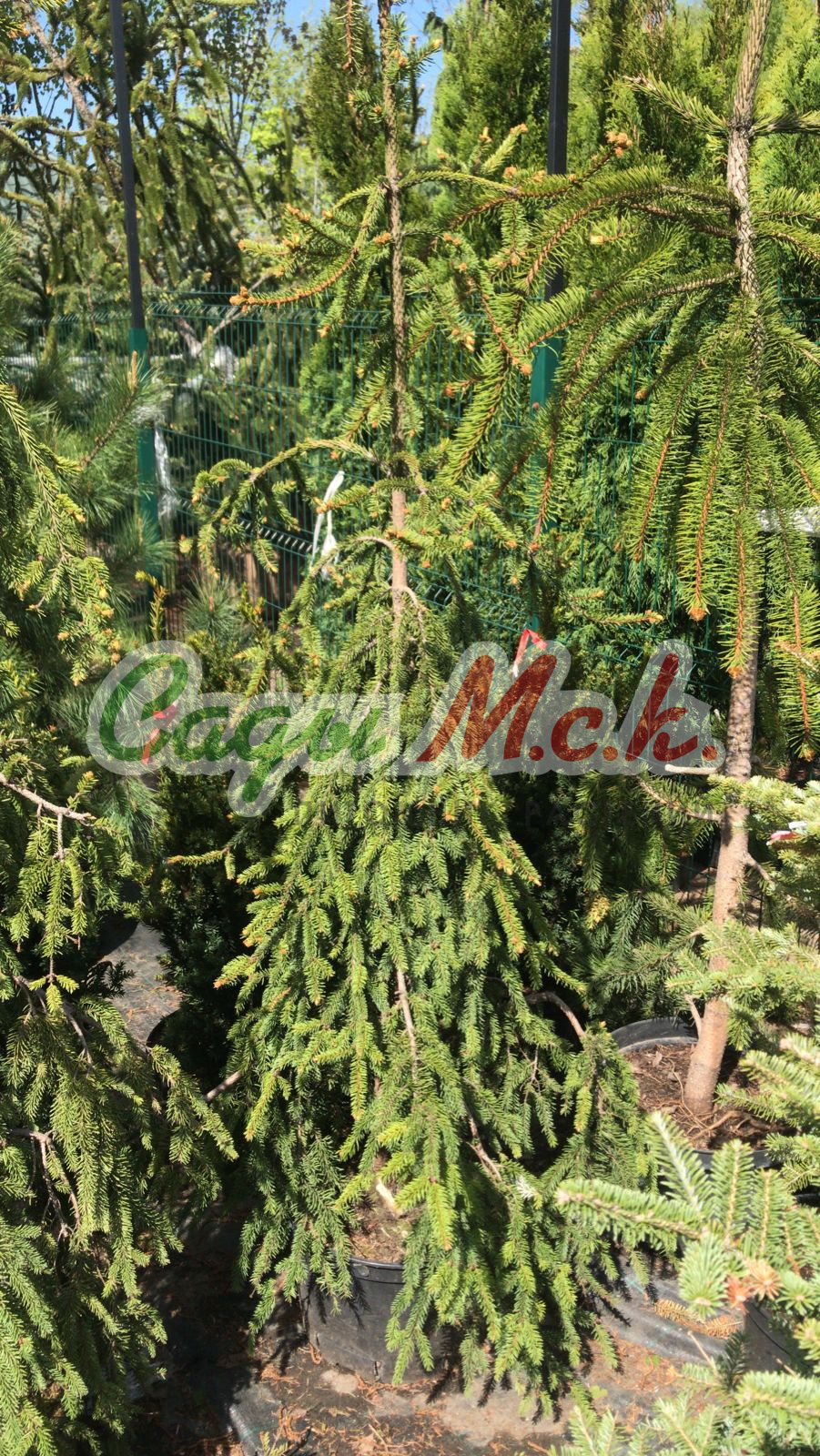 В высоту деревце достигает 8 м, крона узкая, развивается неравномерно, обычно ее диаметр не превышает 3 м. Ежегодно ель увеличивается на 10 см в высоту и 5 см в ширину. Главная особенность крупномера обыкновенная Inversa – ниспадающие, обвисшие ветки и заваливающаяся верхушка. Хвоя блестящая, толстая, темно-зеленого оттенка. Саженцы хорошо переносят сильные морозы, не терпят засухи, но и к переувлажнению относятся негативно. Ель светолюбива, но приживается и в полутени.