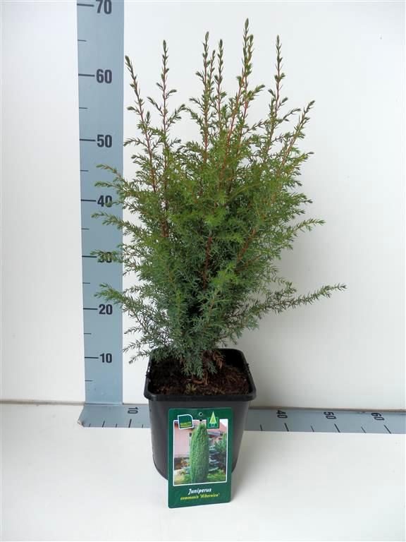 Можжевельник обыкновенный Хиберника - изящный кустарник с узкой колонновидной кроной. Диаметр кроны взрослого растения: 1 м Высота взрослого растения: 3.5 м Форма: Крона колонновидная, густая. Хвоя/Листва: Игольчатая, заостренная, но не колючая, сизовато-зеленая. Требования: Предпочитает солнечные места. К почве и влаге нетребователен. Морозостоек.